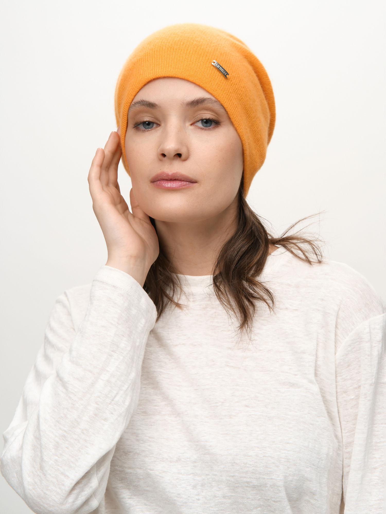 Шапка из кашемира 04322 оранжевая