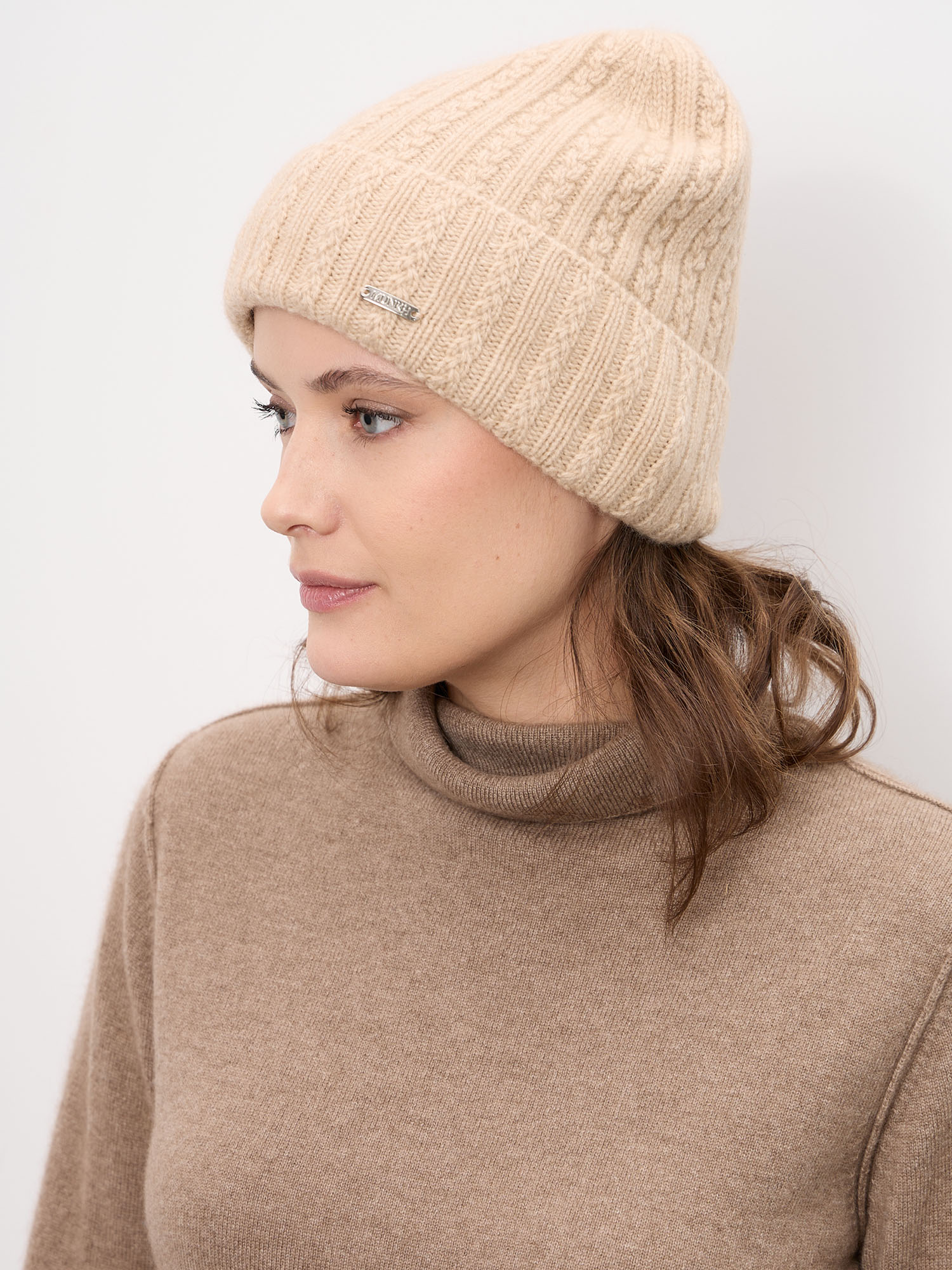 Шапка из кашемира 04337 бежевая