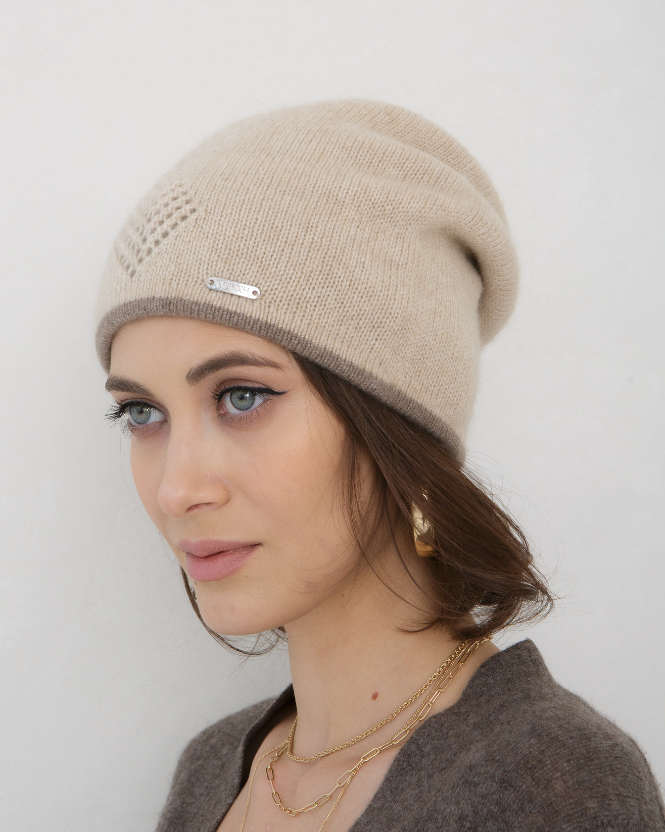 Шапка из кашемира 04177 бежевая