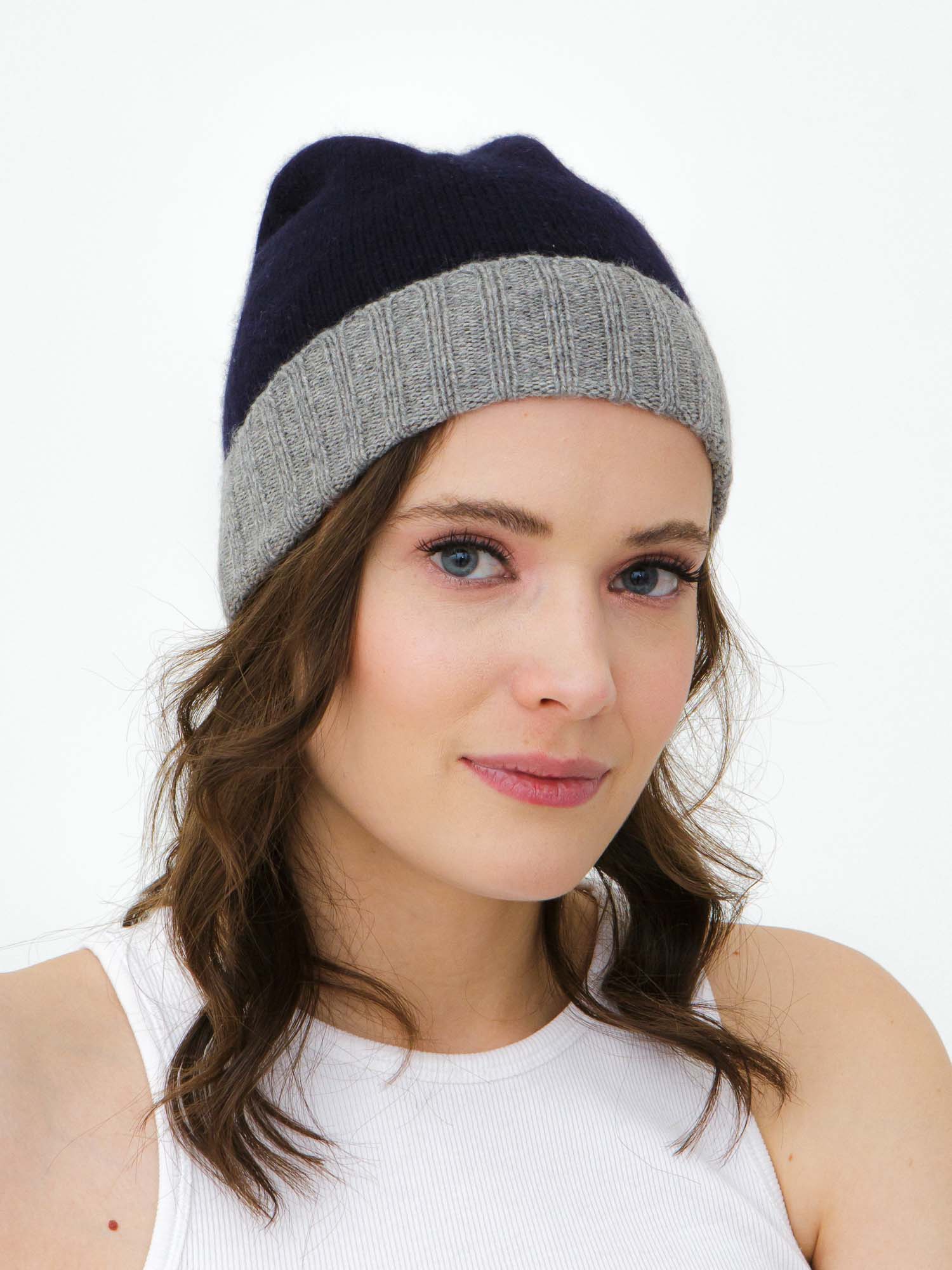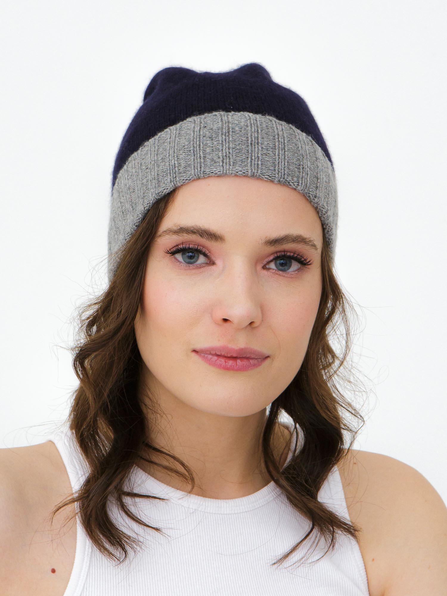 Шапка кашемировая 19309 темно-синий/серый