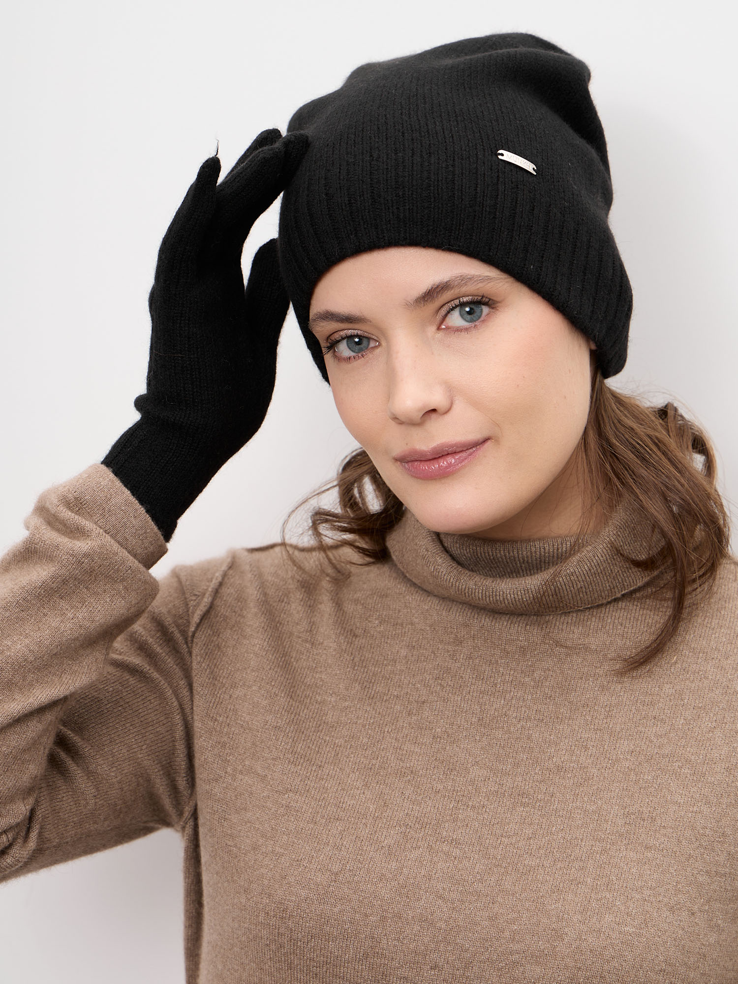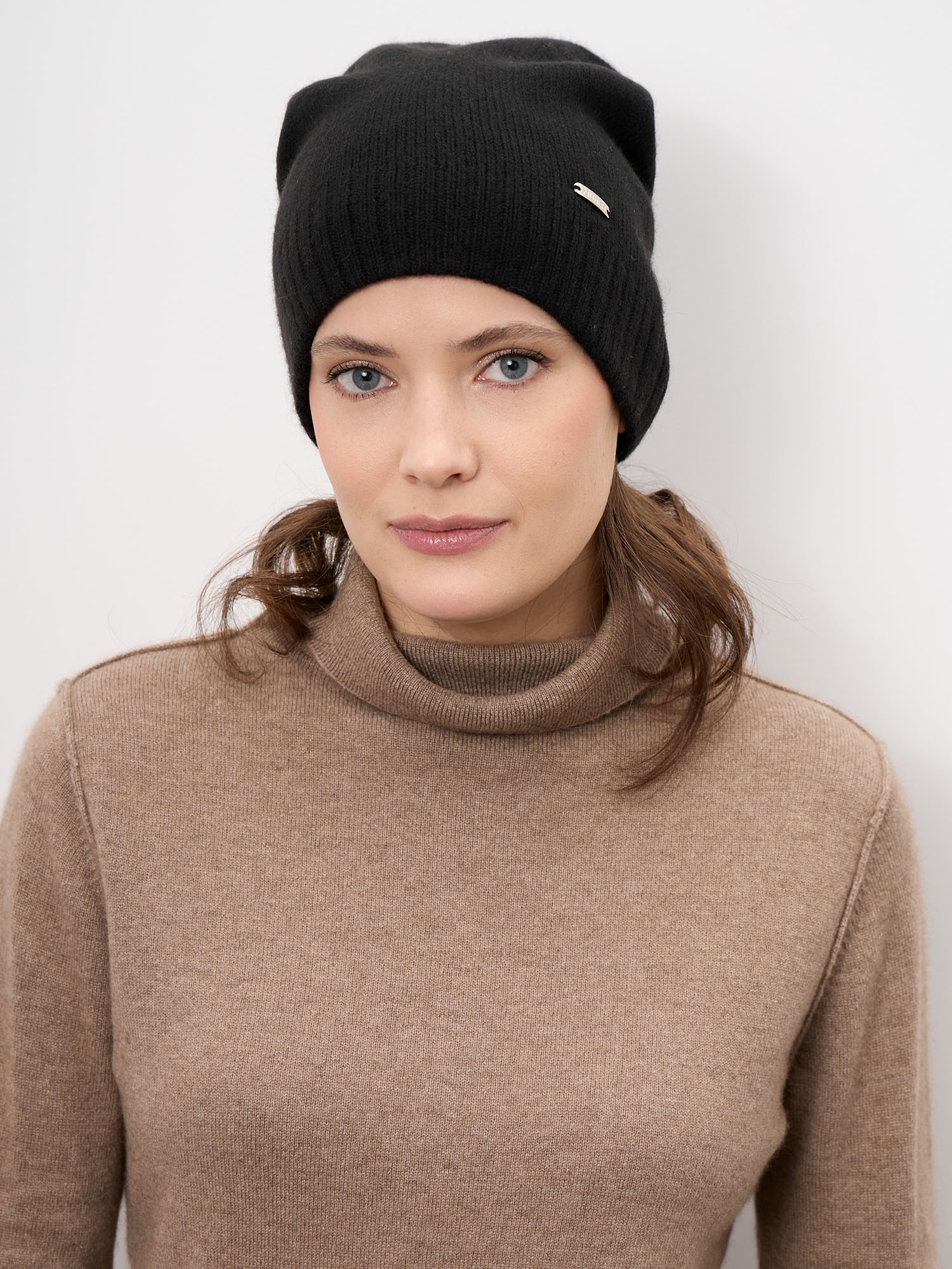 Шапка плотно, но мягко сидит, не сдавливая и не сползая. Подходит для длительной носки в течение дня, легко сочетается с пальто, куртками и кашемировыми изделиями.