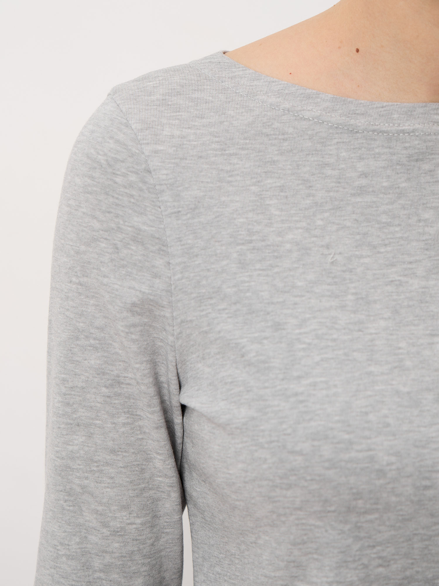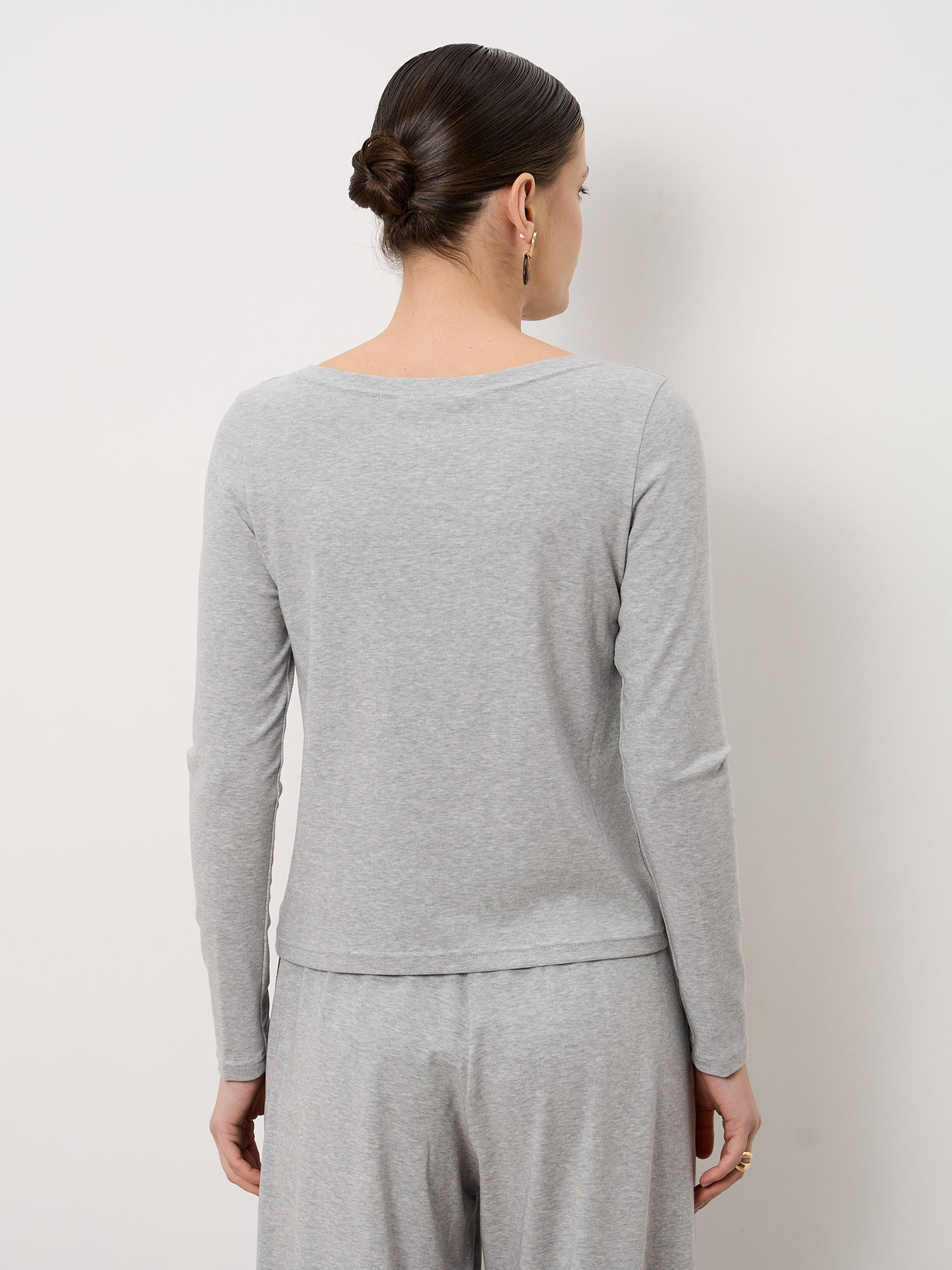 Минималистичный дизайн с аккуратным вырезом и длинными рукавами. Чистые линии и отсутствие лишних деталей делают модель универсальной базой для различных образов — от повседневных до более элегантных.