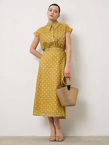 Юбка из тенселя 8011946 в зелёном оттенке с принтом в горошек — женственная и лёгкая модель, которая идеально подходит для тёплого сезона. Классический силуэт миди и аккуратный ретро-принт создают элегантный и стильный образ. Юбка гармонично сочетается с блузой из той же ткани или базовыми топами, позволяя создавать утончённые повседневные комплекты.