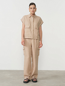 Отлично сочетается с брюками, юбками и шортами из льна. Подходит для повседневных, городских и летних образов.