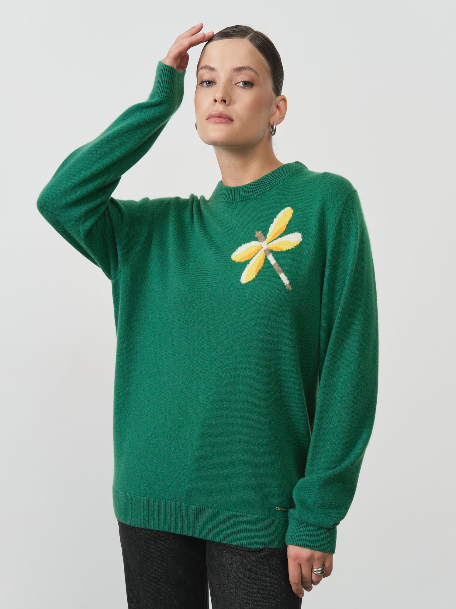 Женский джемпер из натурального кашемира — изысканная и комфортная модель для повседневного и элегантного гардероба. Мягкий, приятный к телу материал обеспечивает тепло и комфорт, а лаконичный дизайн с декоративным мотивом придаёт образу индивидуальность.