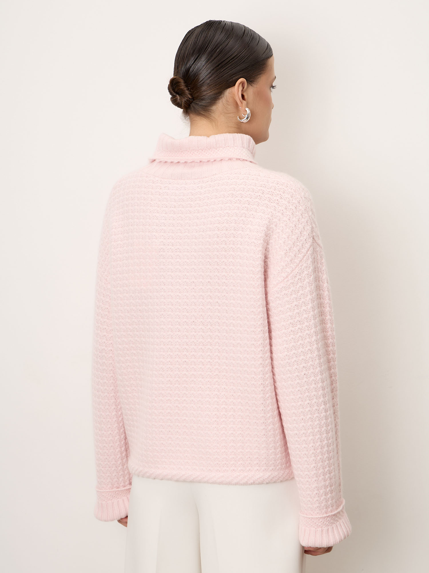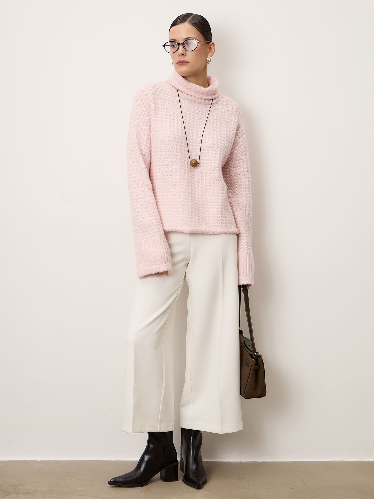 Свободная посадка обеспечивает комфорт и не сковывает движения. Мягкий кашемир приятно прилегает к коже, создавая ощущение уюта и тепла в течение всего дня.