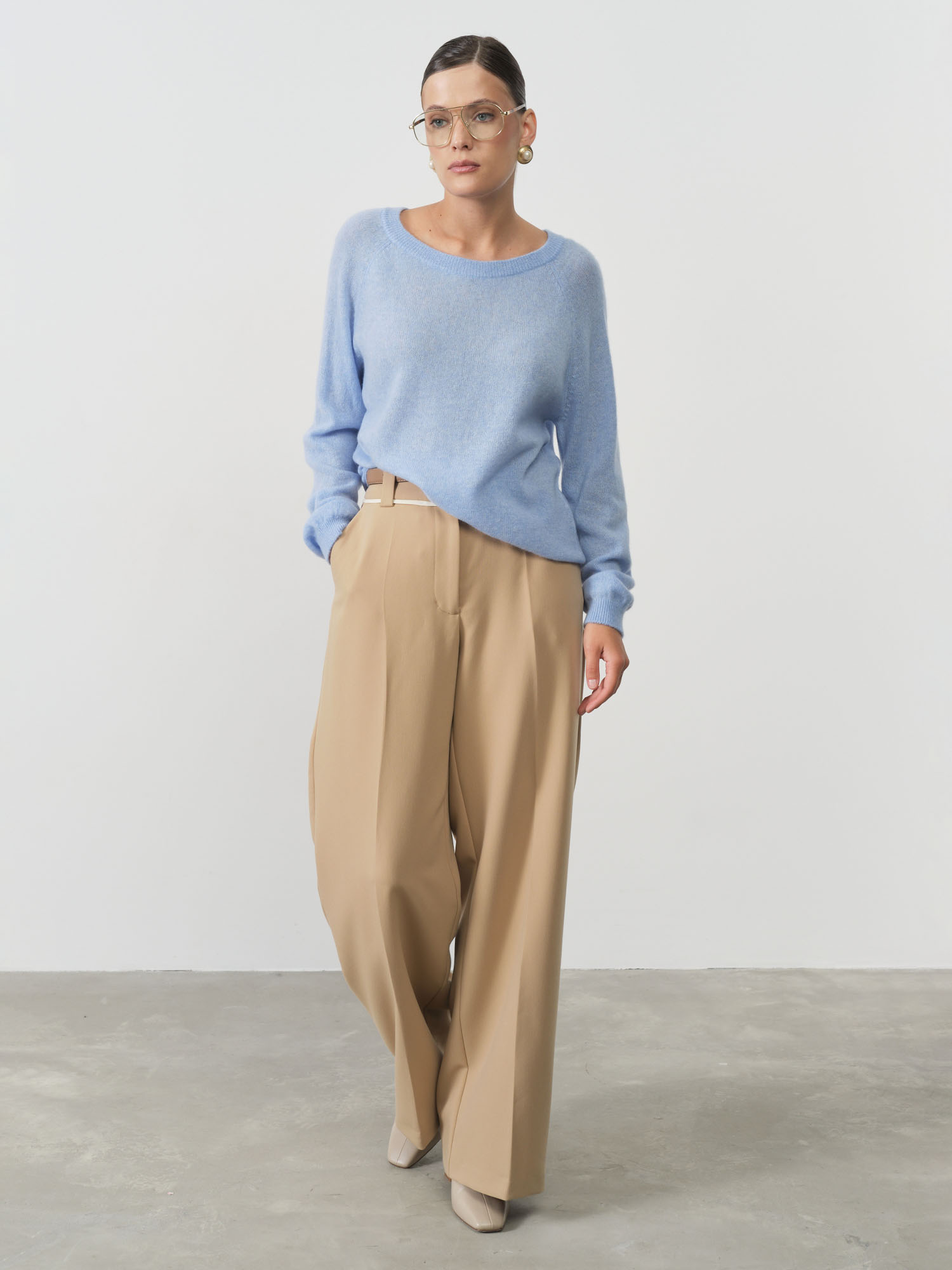 Аккуратная трикотажная отделка горловины, манжет и нижнего края. Ровная вязка подчёркивает качество кашемира и помогает изделию сохранять форму.