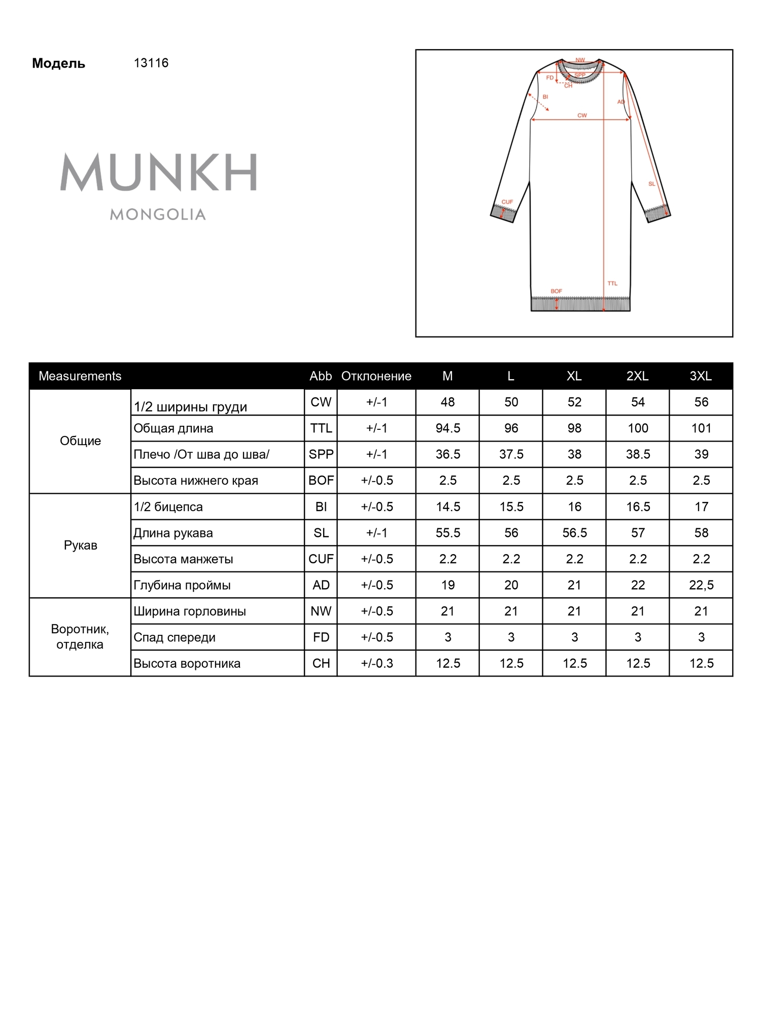 • Размер на модели