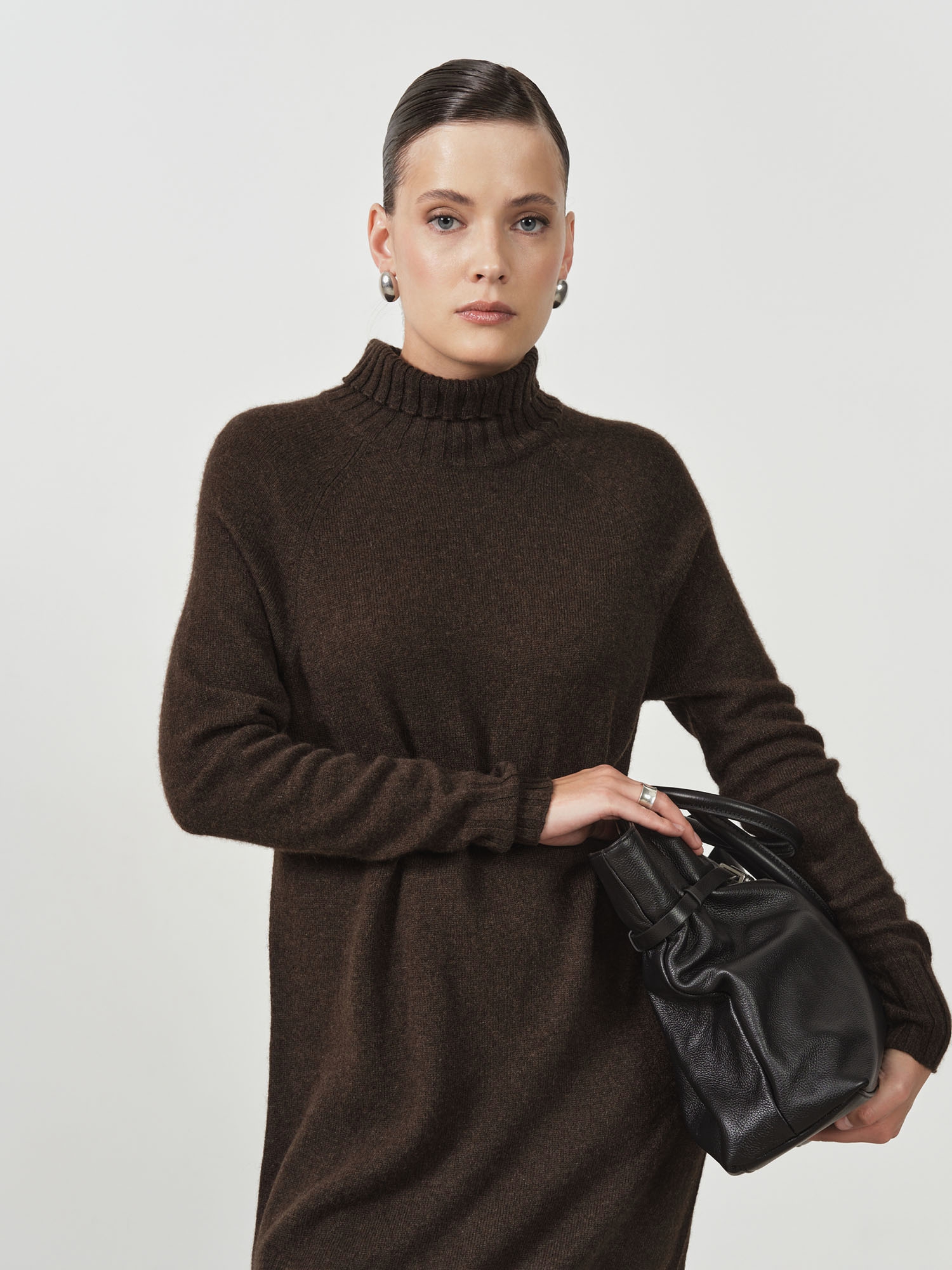 Очень довольна покупкой! Шерсть мягкая, совершенно не колется, красивый цвет горького шоколада, особенно удачно- длинные рукава, обычно на платьях мне коротковаты. При росте 176 длина почти до колена. Тёплое и комфортное, очень стильное, в жизни смотрится лучше, чем на картинке.