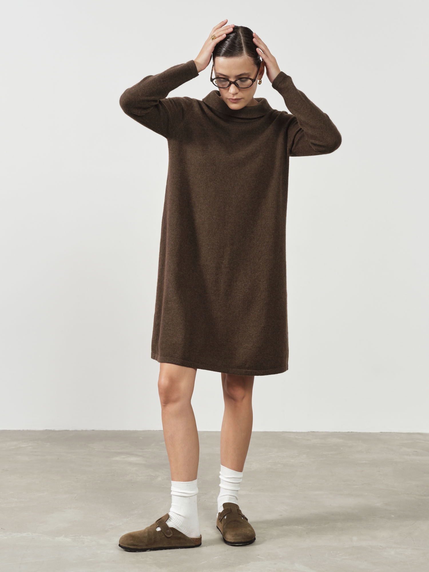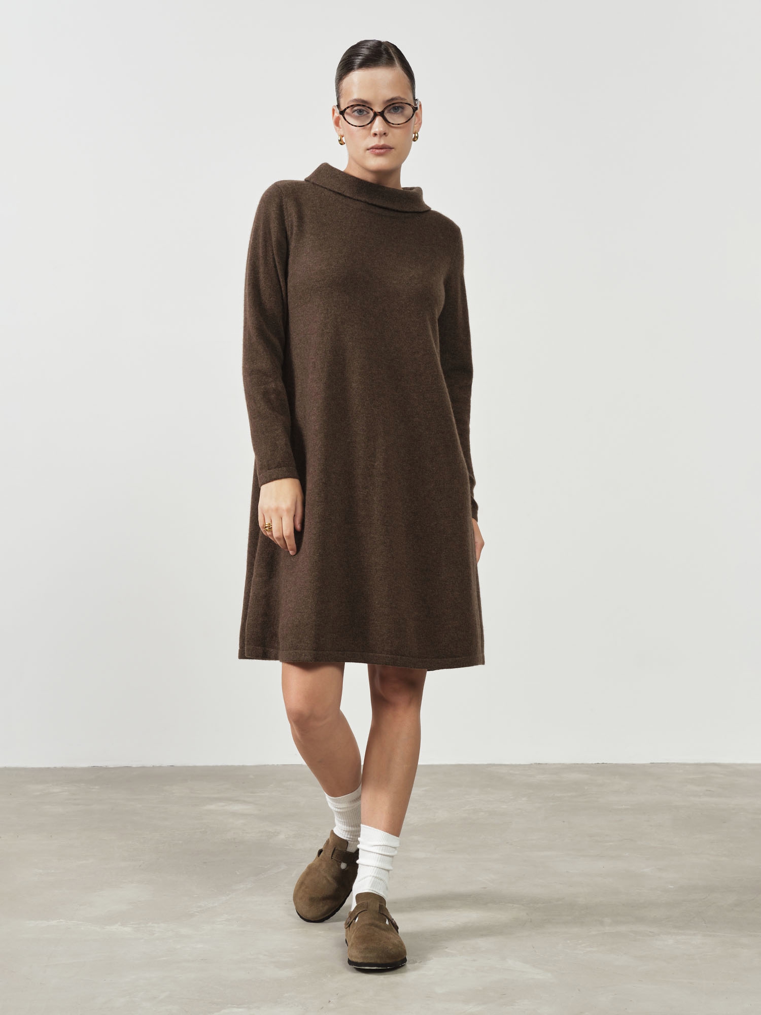 Платье из пуха яка — уютная и элегантная модель, идеально подходящая для прохладного сезона. Свободный силуэт и мягкая фактура создают расслабленный, но стильный образ на каждый день.