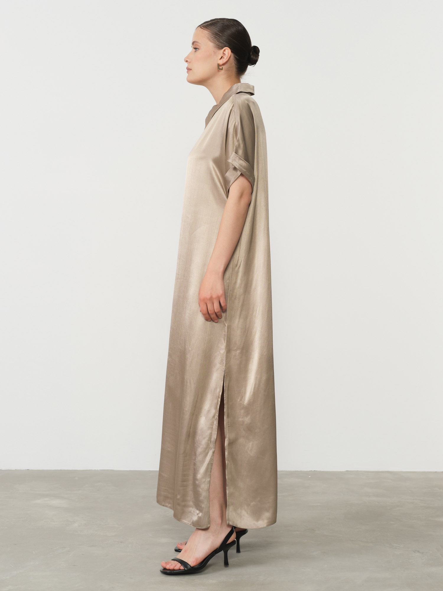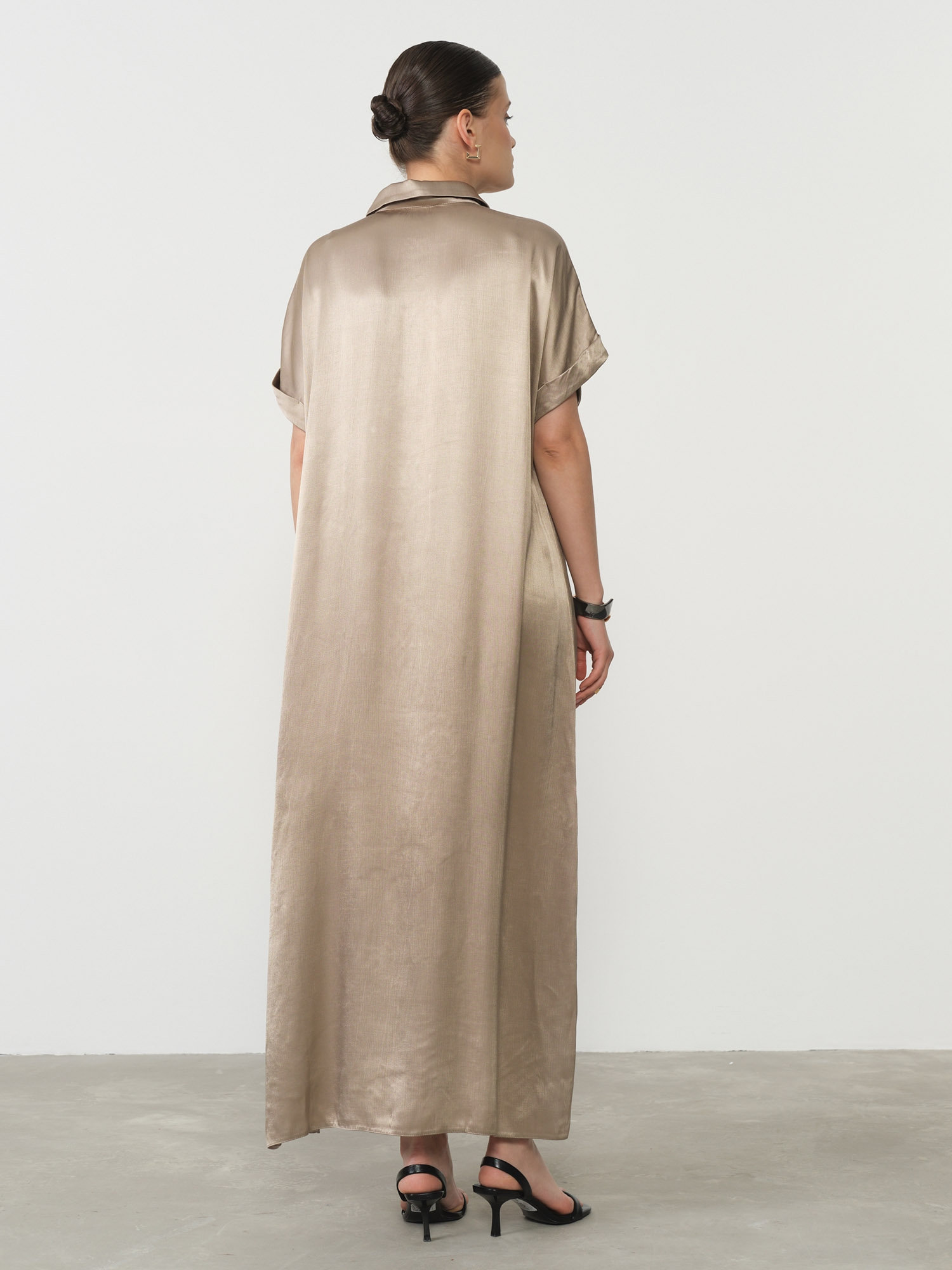 Натуральная вискоза обладает превосходными гигиеническими свойствами – она прекрасно дышит, отводит влагу и не вызывает раздражения даже при длительной носке. В этом платье вы будете чувствовать себя комфортно в течение всего дня, сохраняя безупречный внешний вид. Бежевый цвет легко сочетается с различными аксессуарами, позволяя создавать как сдержанные деловые, так и яркие праздничные образы.