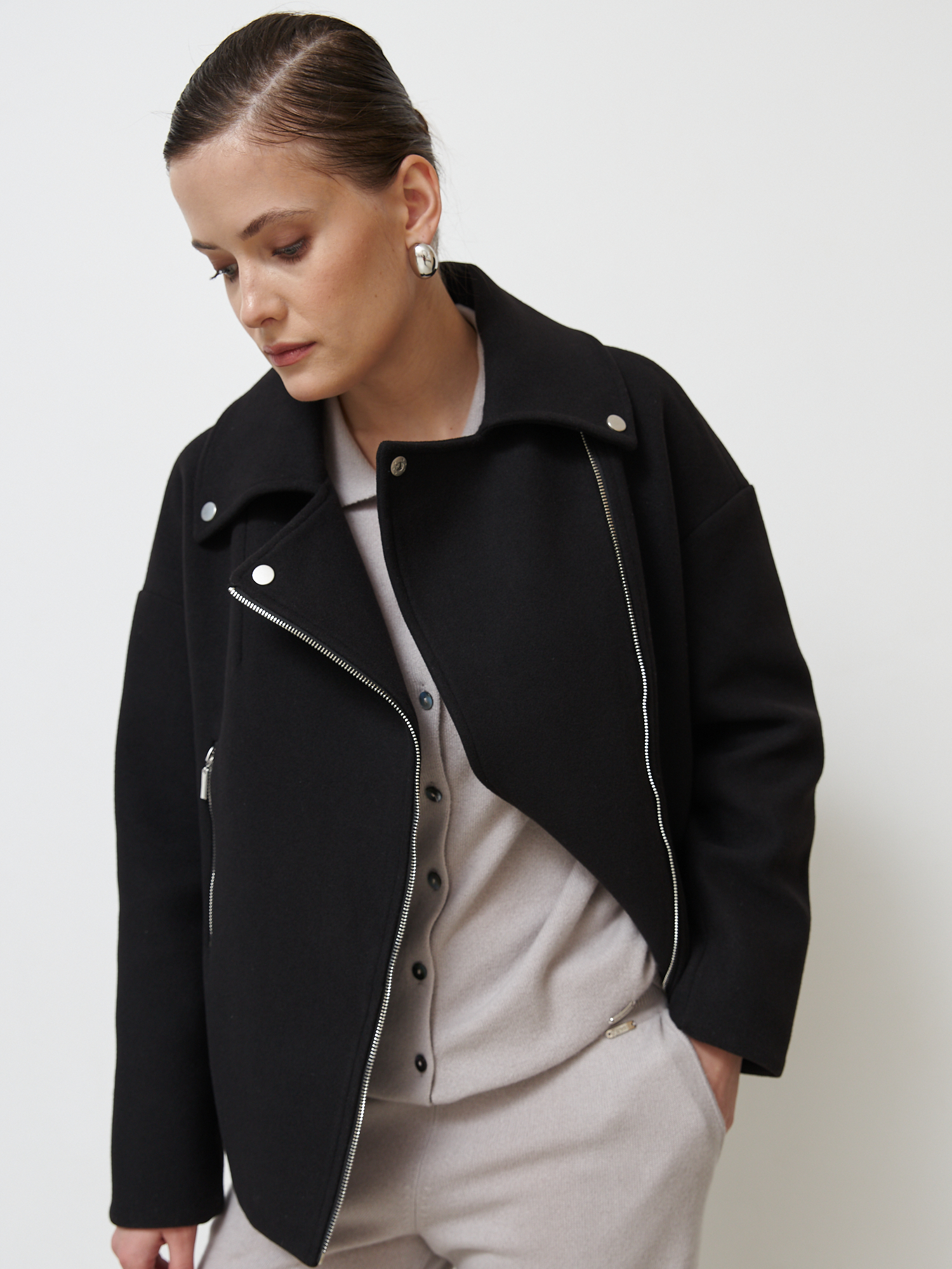 Женское черное пальто в стиле "косуха" — это сочетание элегантности и современного дизайна. Изготовлено из высококачественной шерсти, оно обеспечит комфорт и тепло в прохладную погоду. Асимметричная застежка на молнию и декоративные металлические элементы придают модели стильный и дерзкий вид. Свободный крой позволяет комбинировать пальто с различными образами — от повседневного до делового. Отличный выбор для тех, кто ценит качество и модный внешний вид.