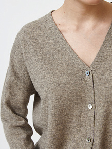 Модель имеет классический V-образный вырез и застежку на удобные пуговицы, что делает кардиган функциональным для любых ситуаций – от рабочих будней до выходных прогулок. Особенность кроя позволяет с легкостью комбинировать его с рубашками, топами, футболками и блузами различных стилей.